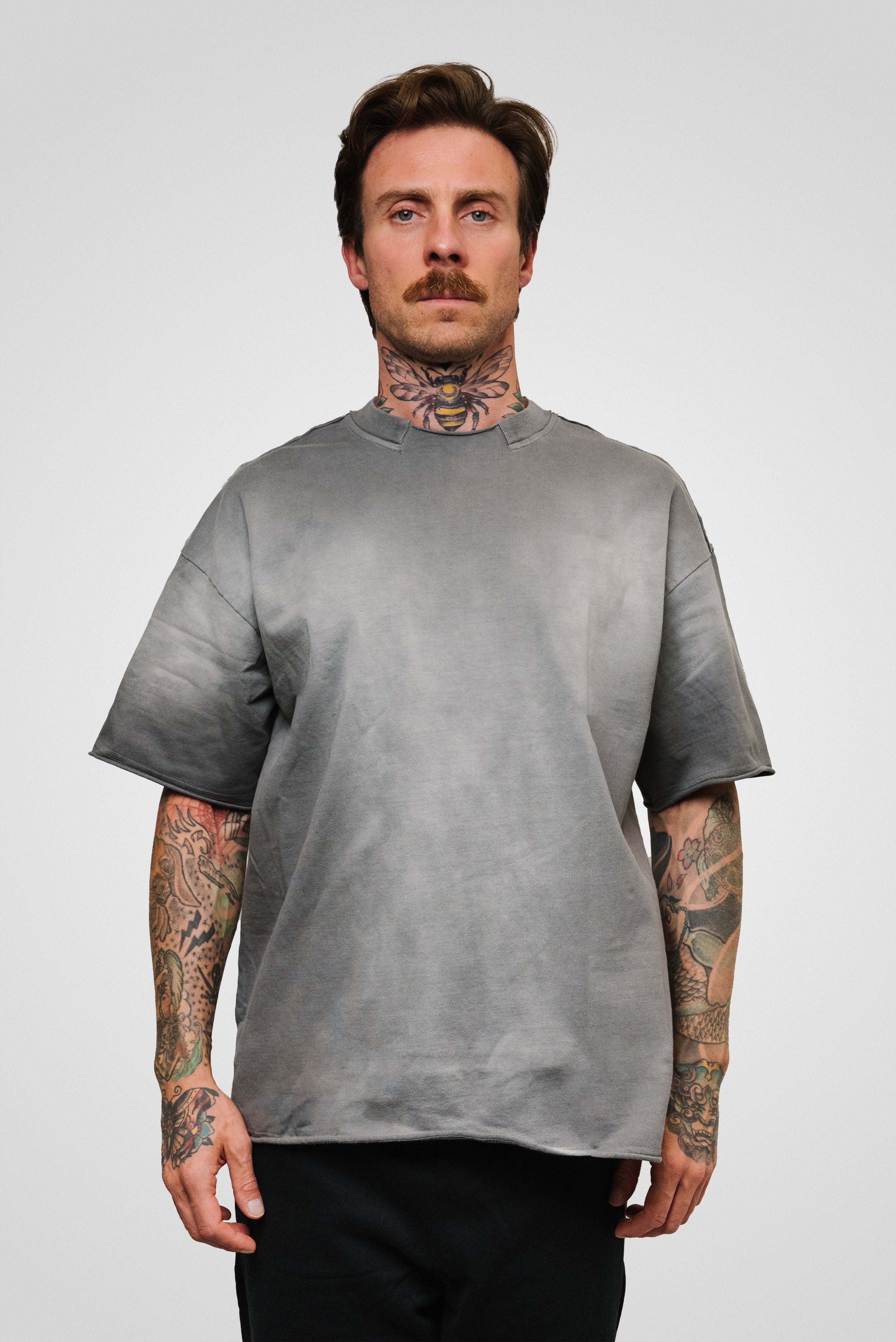 THE DISTRESSED SPRAY FRAYED EDGES TEE GREY - Shoebuya Design